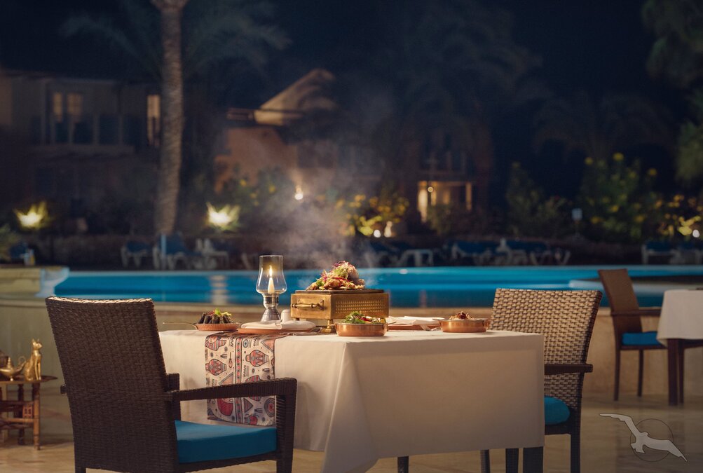 Dine Around El Gouna: Ab 7 Nächten Aufenthalt, können max. drei Abendessen in weiteren Hotels in El Gouna eingenommen werden (Reservierung erforderlich, Getränke nicht inklusive)