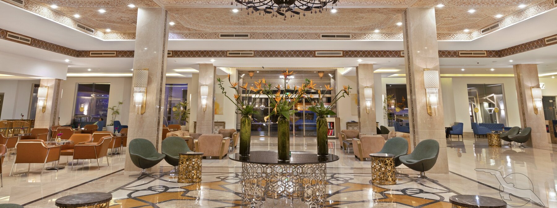 Das beliebte Resort besteht aus einer eleganten Empfangshalle mit Rezeption und Lobbybar, Wintergarten, 6 verschiedene Themen-Buffetrestaurants ( z.B. international, deutsch, asiatisch, italienisch, orientalisch) und Bars, die innerhalb der all inclusive Leistung zur Auswahl stehen. WLAN in der gesamten Anlage (inklusive). Weiterhin steht den Gästen Friseur, Geschäfte und Souvenirshops (nicht inkl.) zur Verfügung. Die Wohngebäude im spanischen Stil sind in Strandnähe doppelstöckig und um die großzügige Lagunen- und Gartenanlage drei- bis vierstöckig gebaut. Vom Sandstrand bis zum zurückliegenden Rezeptionsgebäude durchfließt eine Meerwasserlagune die palmenbewachsene Gartenlandschaft (Shuttle per Boot zwischen Rezeptionsgebäude und Strand inkl.), in deren Mitte sich eine Swimmingpoolanlage mit Sonnenterrasse, Bar und Restaurant auf einer Insel befinden. Ein weiterer Swimmingpool mit Kinderbecken (beheizbar) sowie ein Kinderpool mit Wasserrutschen zieren den Gartenbereich der Anlage. Weiterhin gibt es einen Aquapark mit 7 großen und 3 kleineren Wasserrutschen. Liegen, Sonnenschirme und Badetücher sind an Pool und Strand inklusive. Weiterhin gibt es einen Fitness-/Wellnessbereich mit Sauna, Dampfbad, Jacuzzi und Massage sowie ein Theater für das Animations und Unterhaltungsprogramm.