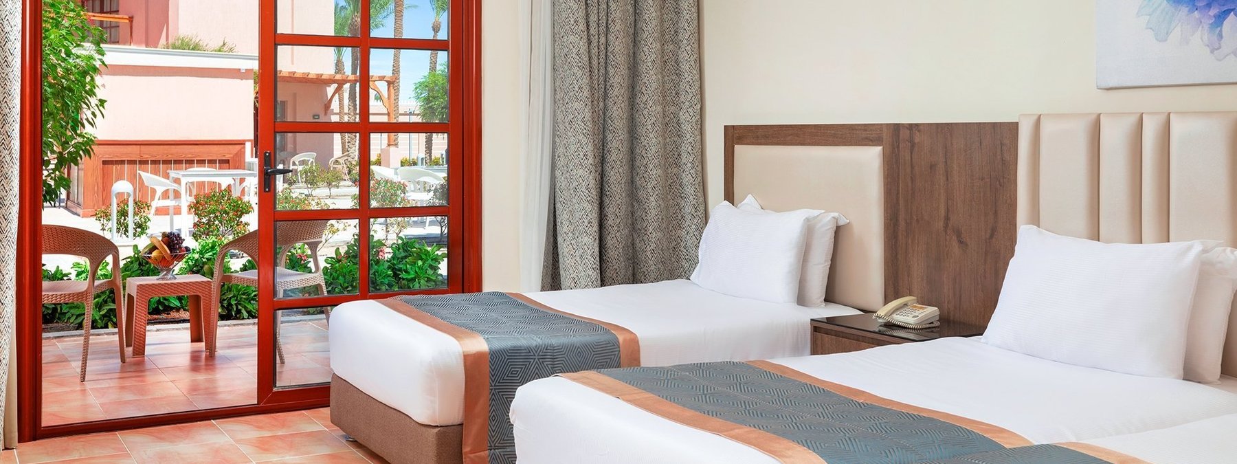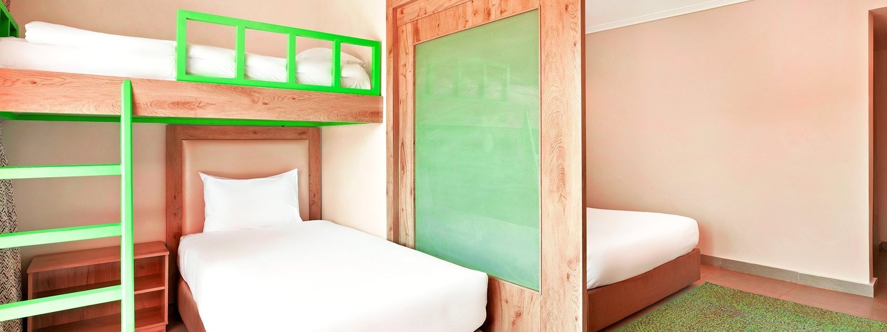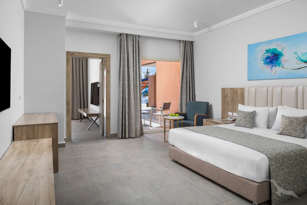 Familienzimmer Poolblick (FZP) bei gleicher Ausstattung wie die DZ, ausgestattet mit zwei separaten Schlafräumen.