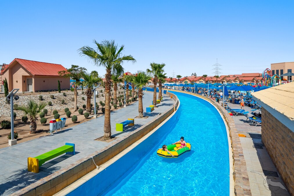 Ca. 1 km vom Strandhotel Pickalbatros Dana Beach Resort entfernt, wo den Gästen ein eigener Strandabschnitt mit Beachbar zur Verfügung steht regelmäßiger Shuttle inklusive). Die drei Hotelanlagen Jungle Aqua Park, Alf Leila Wa Leila und das Water Valley by Neverland liegen zusammen mit dem Neverland Aquapark auf einem großen Areal. Nach Hurghada sind es ca. 15 km. Restaurants, Unterhaltungsmöglichkeiten sowie ein Freizeit- und Einkaufszentrum befinden sich in unmittelbarer Nähe.
