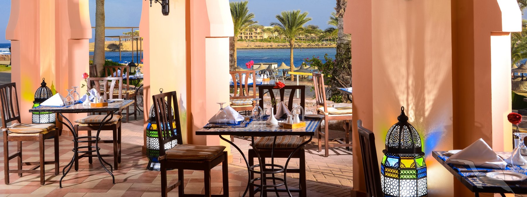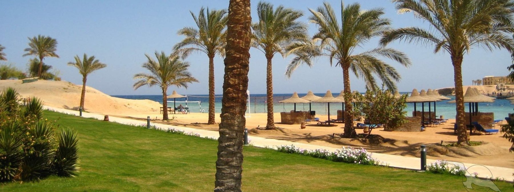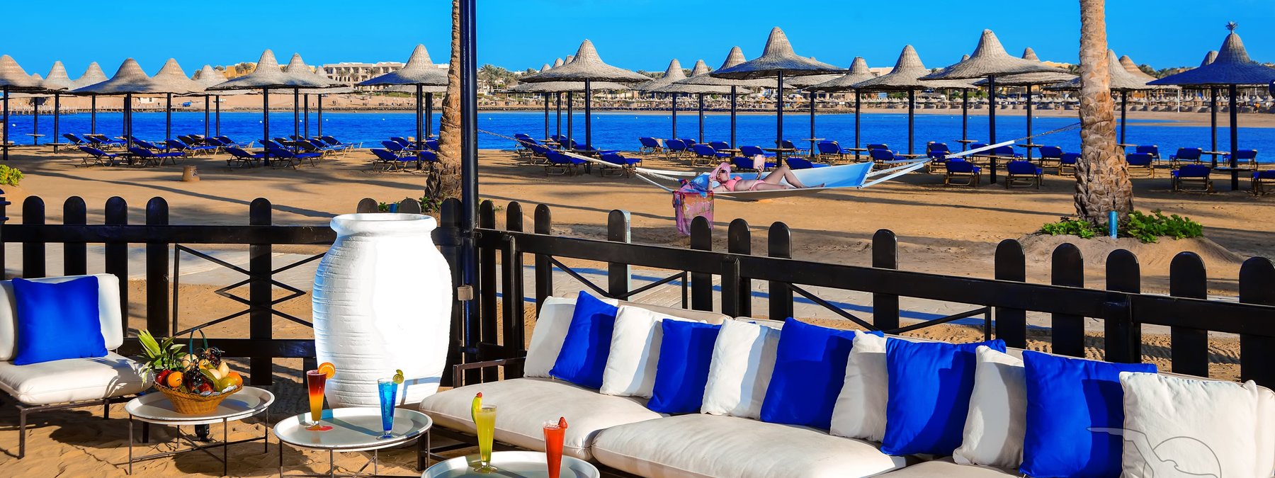 Direkt am langen Sandstrand und am Hausriff der Coraya Bay gelegen. Korallen wachsen stellenweise bis in Ufernähe (Badeschuhe empfohlen). Beste Schnorchel- und Tauchbedingungen. Flach abfallendes Wasser für einen direkten Einstieg ins Meer (ca. 150 m vom Hotel entfernt). Bis ins Zentrum von El Quseir sind es ca. 67 km, zum Flughafen ca. 7 km.