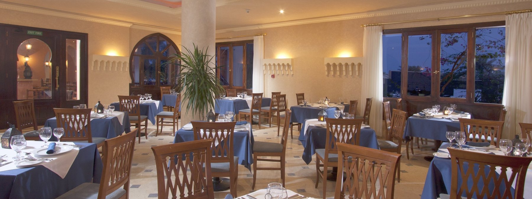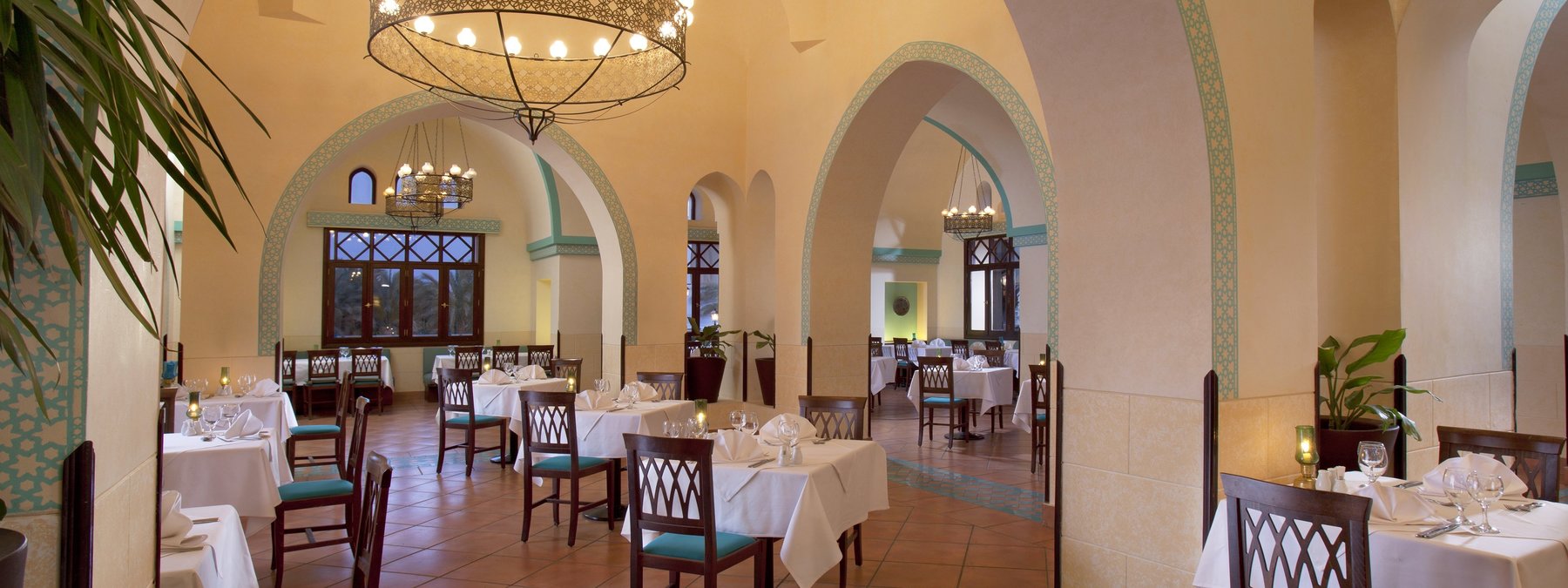 Dine Around: Das Abendessen kann in drei weiteren à la carte Restaurants im “Madinat Coraya“ gegen Aufpreis und Reservierung eingenommen werden.