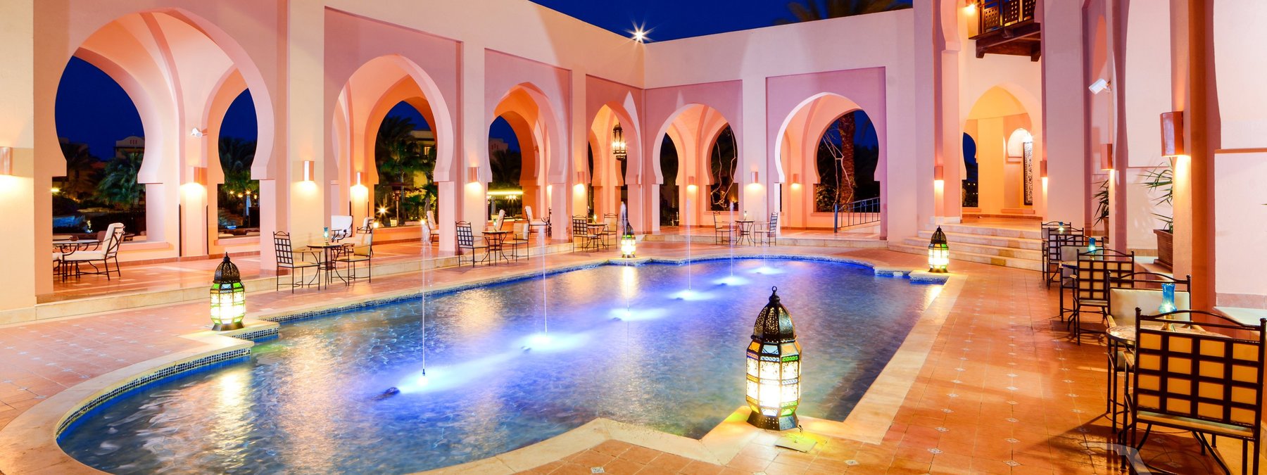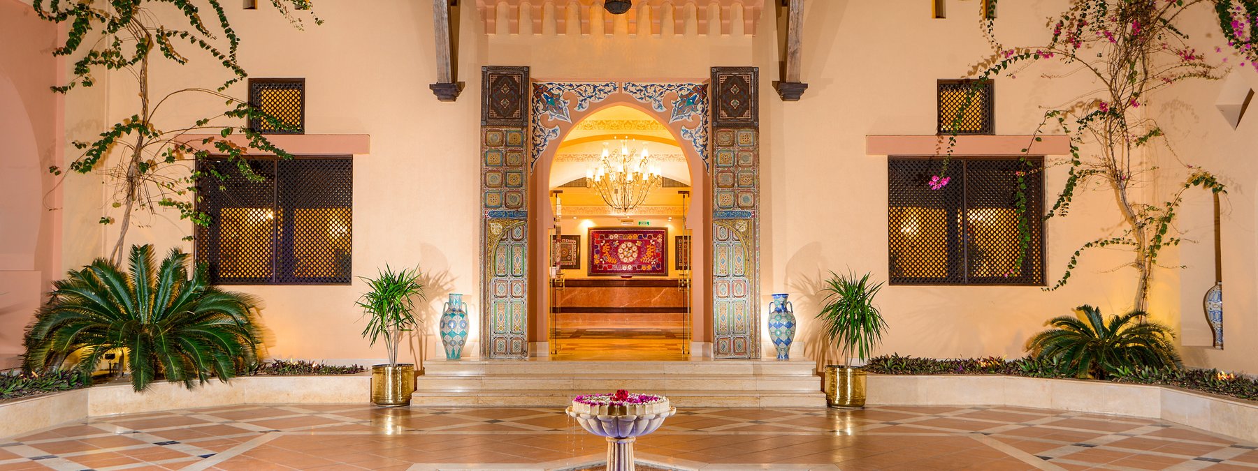 Das Hotel ist im orientalischen Stil gebaut und besteht aus zwei bis dreistöckigen Wohngebäuden. Zu den Einrichtungen gehören eine elegante Eingangshalle mit Rezeption und Lobby, Hauptrestaurant mit Terrasse, à la carte Restaurant mit mediterranen Spezialitäten, Beduinenzelt mit Café, Amphitheater, WLAN (inklusive, begrenztes Datenvolumen, maximal 2 Endgeräte pro Zimmer) sowie Geschäfte. Im gepflegten Gartenbereich befinden sich drei Swimmingpools (einer beheizbar) und eine Poolbar. Liegen, Sonnenschirme und Badetücher sind an Pool und Strand inklusive. Im “Madinat Coraya“ befindet sich ein Aquapark mit insgesamt 19 Rutschen (vor Ort buchbar).