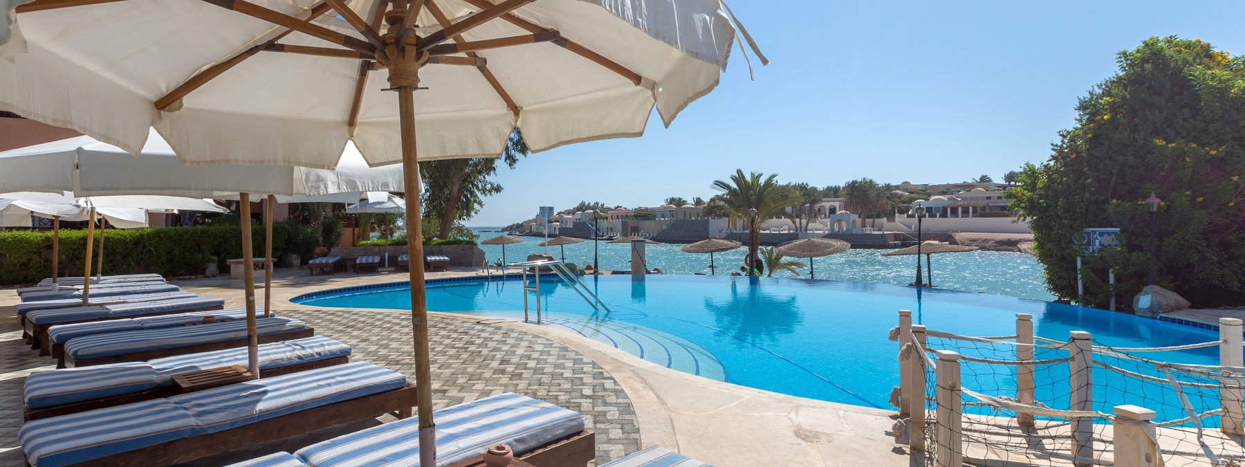 Die Anlage liegt auf der künstlichen Halbinsel direkt an einer der Lagunen. Kostenloser Bootstransfer zum schönen Badestrand “Zeytouna Beach“ mit Badesteg. Zum Ortszentrum von El Gouna sind es nur wenige Gehminuten. Hurghada liegt ca. 30 km südlich.