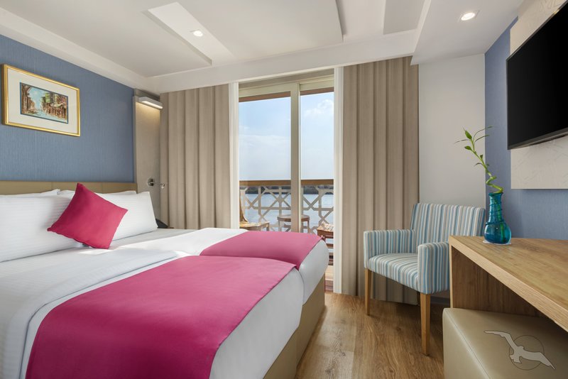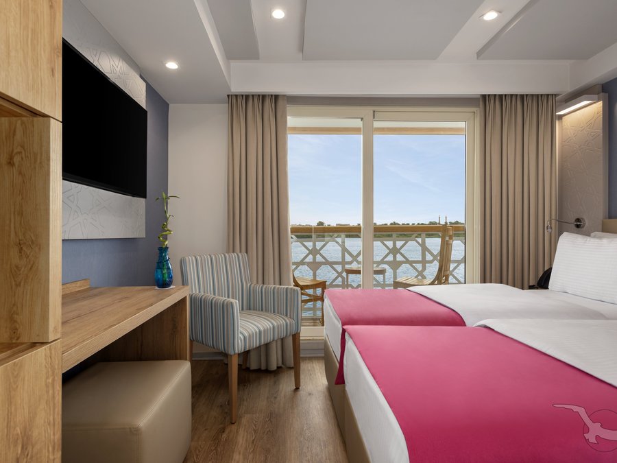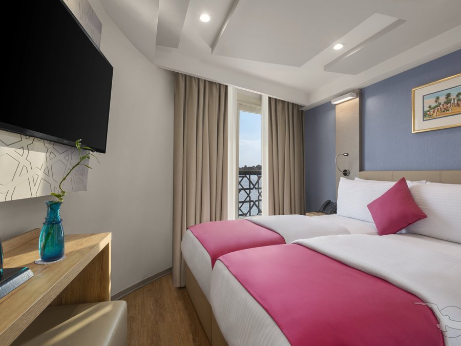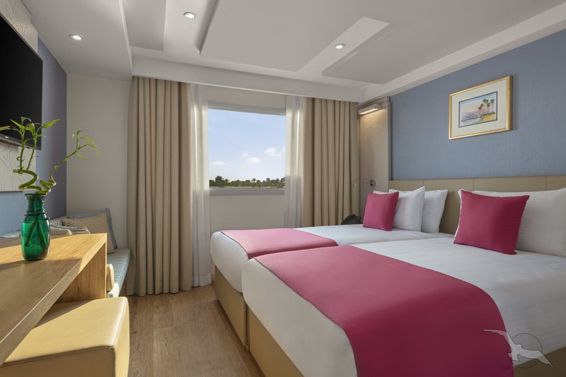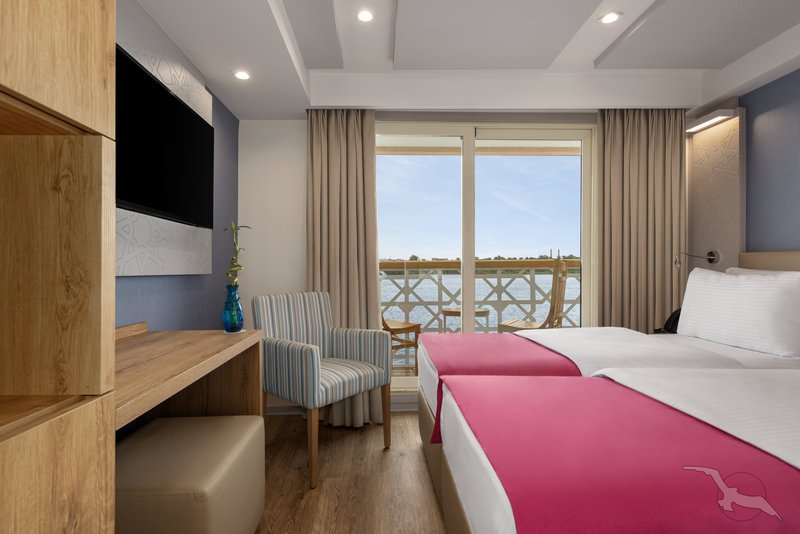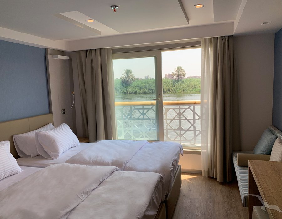Das Schiff verfügt über 38 Kabinen. Alle Kabinen liegen außen, sind modern und komfortabel in Design und Ausstattung (ca. 16 m²). Die Kabinen auf dem Atondeck verfügen über einen kleinen Balkon mit zusätzlichen Sitzgelegenheiten. Zwei größere de Luxe-Kabinen befinden sich im Bugbereich (Typ A ca. 22 m², Typ B ca. 28 m²). Die Kabinen auf dem Horusdeck sind mit französischem Balkon ausgestattet, auf dem Nildeck mit Fenster (nicht zu öffnen). Alle Kabinen verfügen über Sessel bzw. Sitzecke, Dusche/WC, Föhn, regulierbare Klimaanlage, SAT-TV, Musik-, Film- und Dokumentationskanal, Schiffstelefon, Privatsafe, Kabinenservice, Kühlschrank, Teekocher, 220 Volt Wechselstrom.