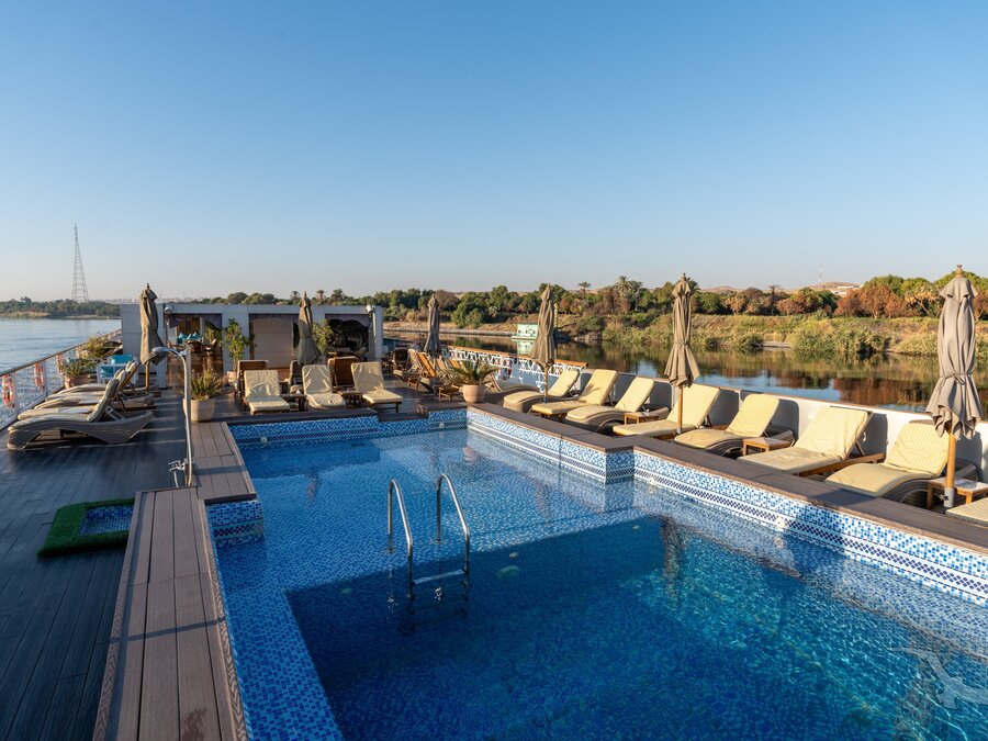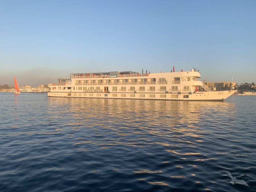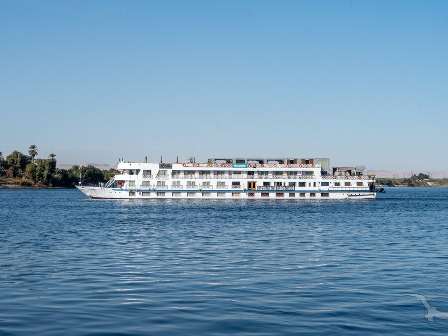 Das 2019 umgebaute und neu konzipierte Nilkreuzfahrtschiff MS Royal Vision ist durch seinen geringen Tiefgang ideal geeignet, auch in der Niedrigwasserzeit der Wintermonate die Kreuzfahrt auf der gesamten Nilstrecke zwischen Kairos Pyramiden und den Tempeln Oberägyptens durchzuführen. Phoenix Reisen chartert das First-Class-Schiff (Landeskategorie 5 Sterne de Luxe) exklusiv von der örtlichen Agentur Dynasty Travel und hat dadurch, wie gewohnt, Einfluss auf Organisation und Durchführung aller Landausflüge. Das Schiff ist geschmackvoll, mit orientalischen Stilelementen, eingerichtet und erstklassig ausgestattet, verfügt über vier Decks mit einem Eingangsbereich inklusive Rezeption, Boutique, Massagebereich, Salon mit Bar, Restaurant (eine Tischzeit) sowie Wäscheservice. Auf dem Sonnendeck befindet sich die Sky Lounge mit Bar, Sitzgelegenheiten mit ausreichend Schattenplätzen (Sonnensegel/-schirme) und Sonnenliegen rund um den Swimmingpool (Badetücher inklusive) sowie eine Fitnessecke. WLAN im öffentlichen Bereich kostenfrei (Empfang abhängig vom Fahrgebiet). Unsere Deutsch sprechende Reiseleitung sowie gut ausgebildeten, lizensierten Reiseführer begleiten Sie während Ihrer gesamten Reise zu den Höhepunkten durchs Land der Pharaonen und stehen Ihnen an Bord jederzeit zur Verfügung. Bordwährung ist das Ägyptische Pfund (EURO wird akzeptiert).