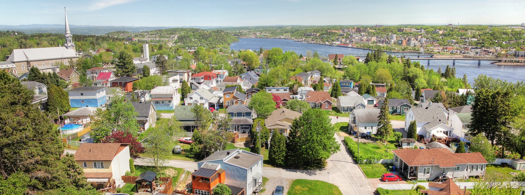 Blick über die kleine Stadt Saguenay und Umland, Kanada