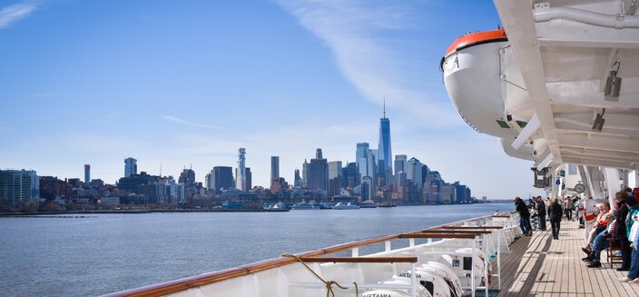 Artania -Gäste blicken auf die Skyline von Manhattan, MS Artania