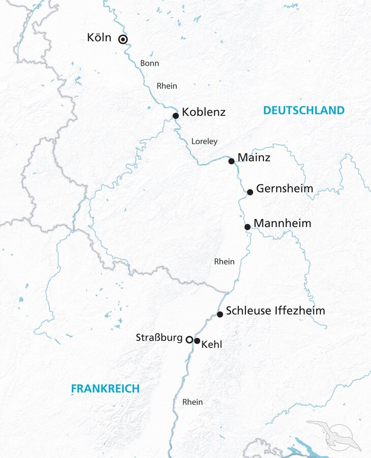 Einmal Flussluft schnuppern auf unserem luxuriösen Schiff MS Annika und dabei Städte und die dazugehörigen Sehenswürdigkeiten kennenlernen. Sie besuchen als Highlight der Reise Straßburg, haben die Möglichkeit, Heidelberg zu besichtigen und passieren die Loreley auf dem romantischen Rhein. Bevor Sie nach vier erlebnisreichen Tagen wieder Köln erreichen, haben Sie einen abendlichen Aufenthalt in Koblenz. Die Crew unseres wunderschönen Flusschiffes wird Sie an Bord kulinarisch verwöhnen, und das geschmackvolle Interieur an Bord wird Sie begeistern.