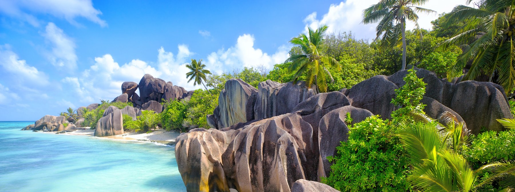 Die Republik Seychellen ist ein Inselstaat im Indischen Ozean. Topografisch gehört dieser zum afrikanischen Kontinent. Während des Landgangs bei Ihrer Seychellen-Kreuzfahrt können Sie sich auf Englisch und Französisch verständigen, als dritte Amtssprache wird auf Französisch basierendes Seychellenkreol gesprochen. Landeswährung ist die Seychellen-Rupie; in der Regel können Sie in Touristenzentren alternativ mit Dollar oder Euro bezahlen. Die Einwohner – die Seychellois – sind die Nachkommen aus Verbindungen zwischen europäischstämmigen Einwanderern und Afrikanern. Die Mehrheit der Bevölkerung ist römisch-katholisch, daneben gibt es eine Minderheit von Hindus und Muslimen. Die Inseln sind berühmt für ihre Schildkrötenpopulationen und eine einzigartige Pflanze: die Seychellenpalme.