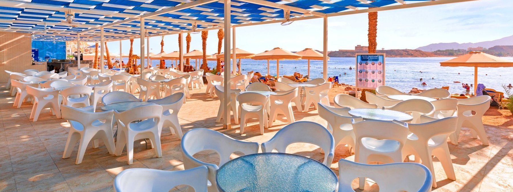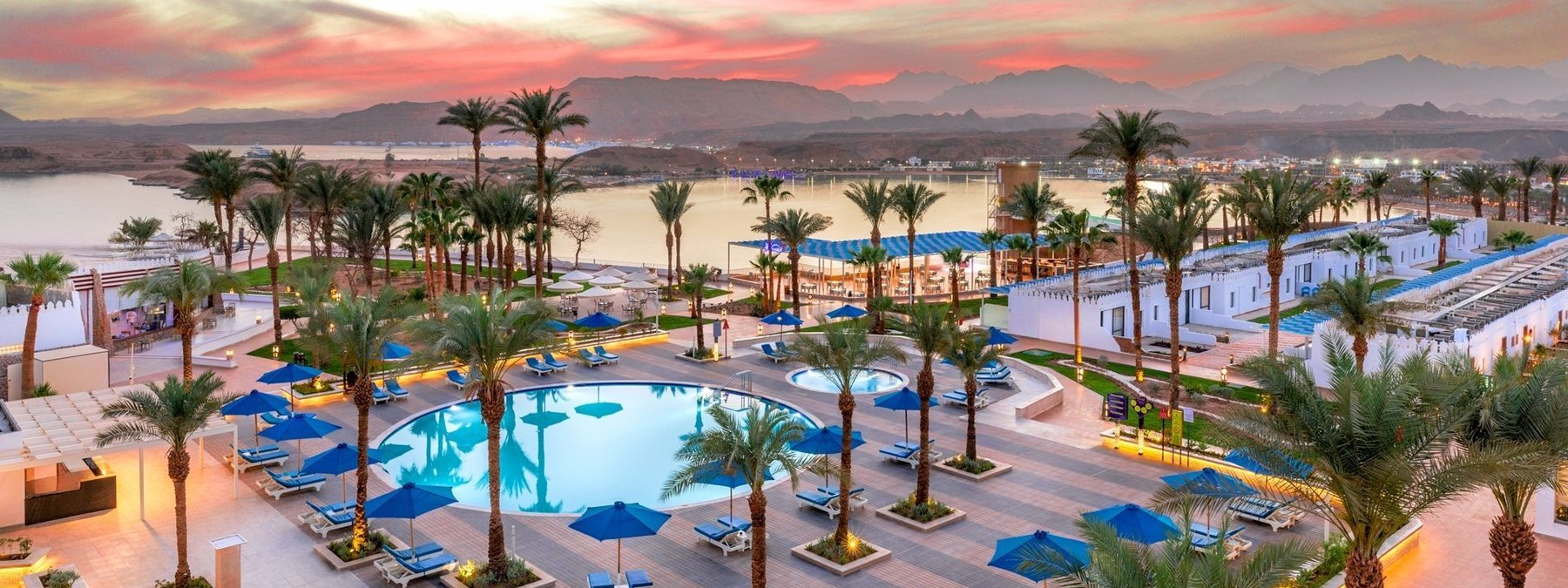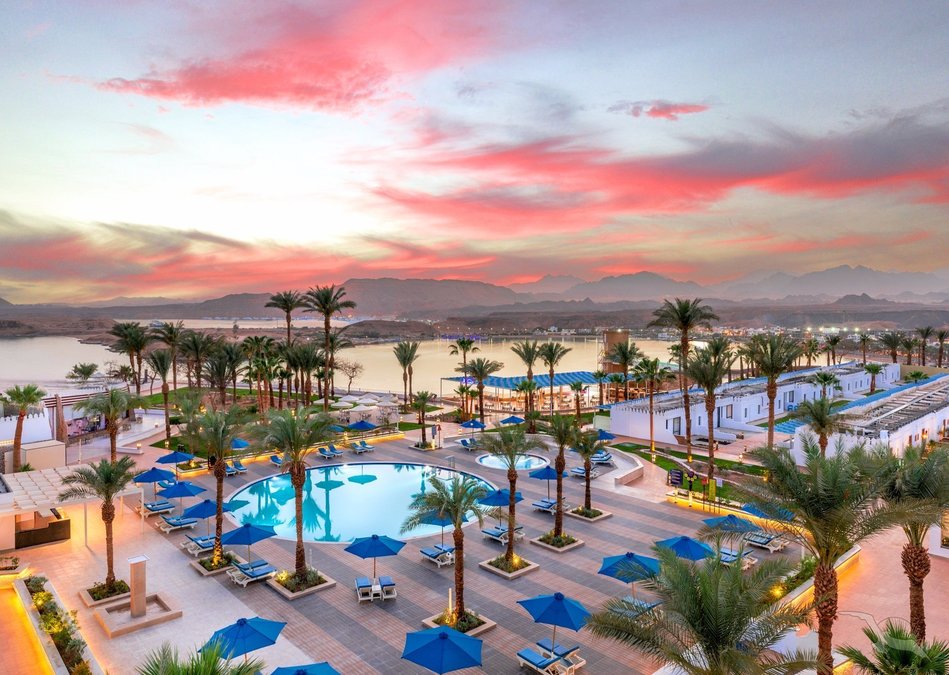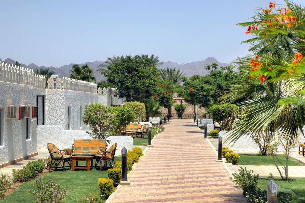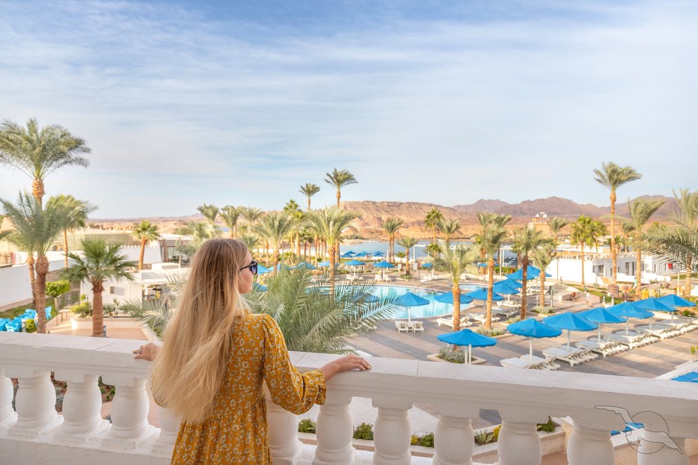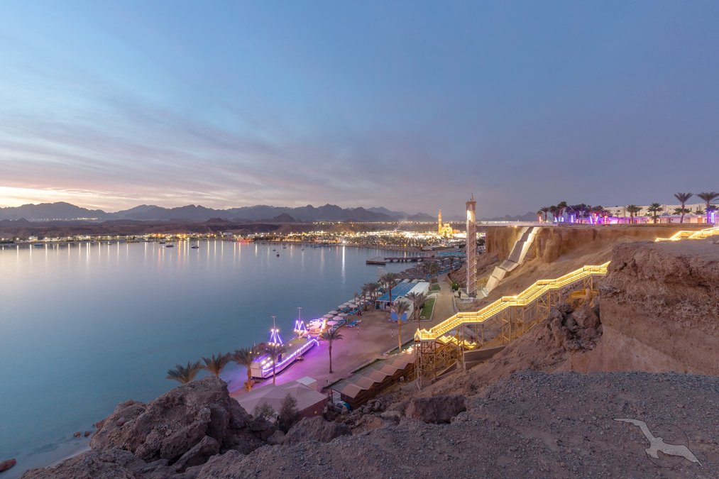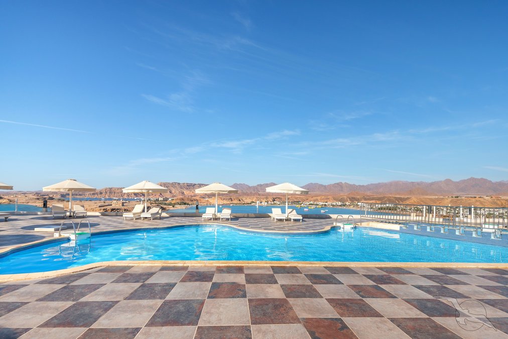 Auf dem Plateau Ras Um el Sid, oberhalb der Maya-Bucht gelegen, mit schöner Aussicht auf das Sinaigebirge. Der private Strand ist über einen Panoramaaufzug bequem erreichbar. Stellenweise wachsen Korallen bis in Ufernähe (Badeschuhe empfohlen). Die Naama Bucht liegt in ca. 8 km Entfernung.