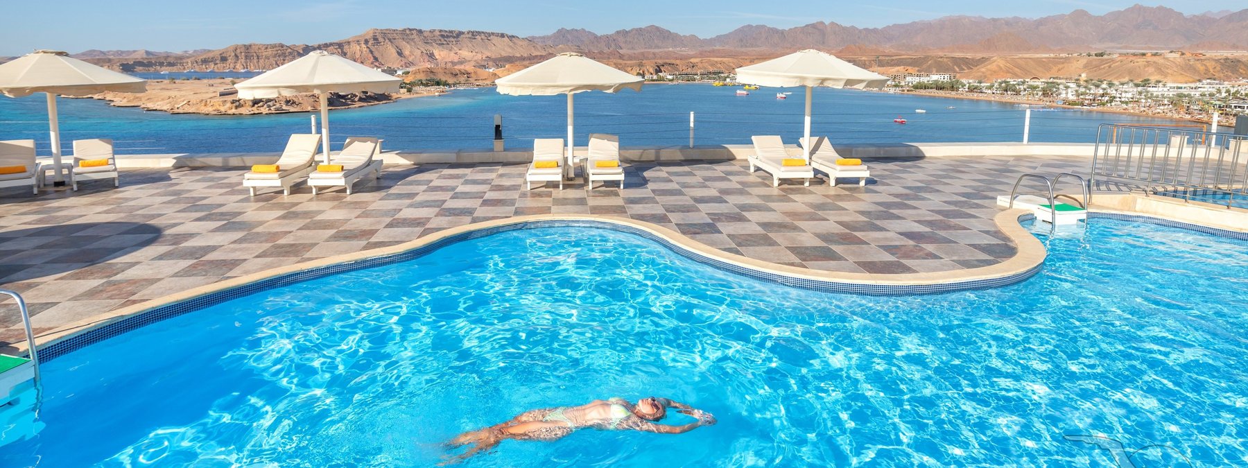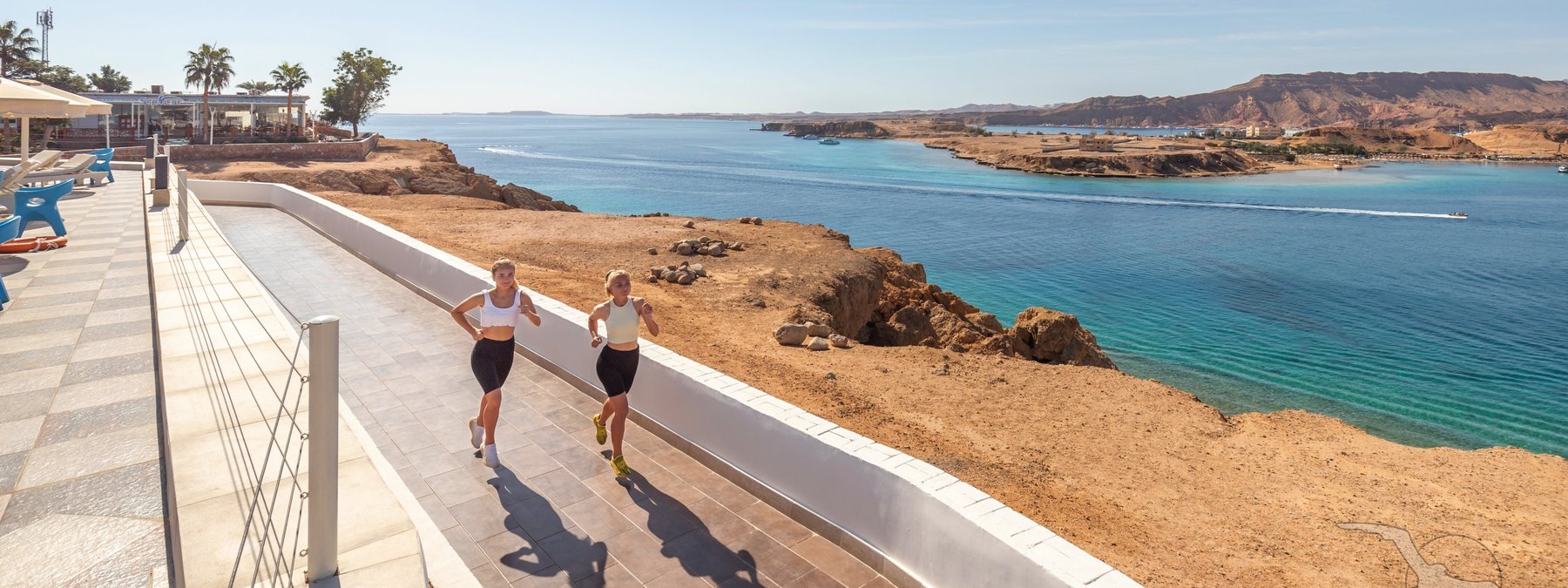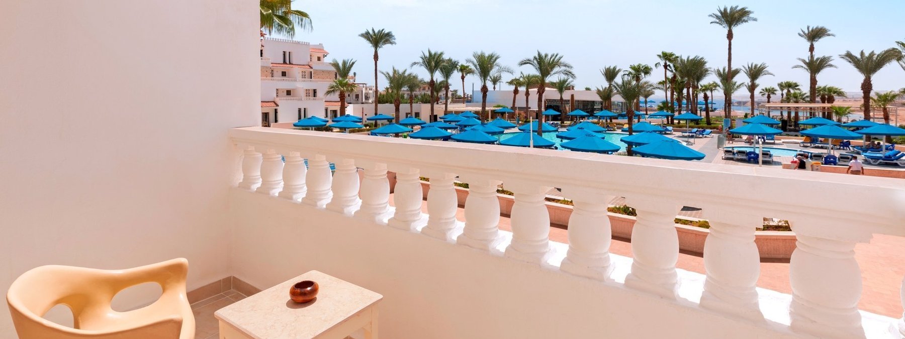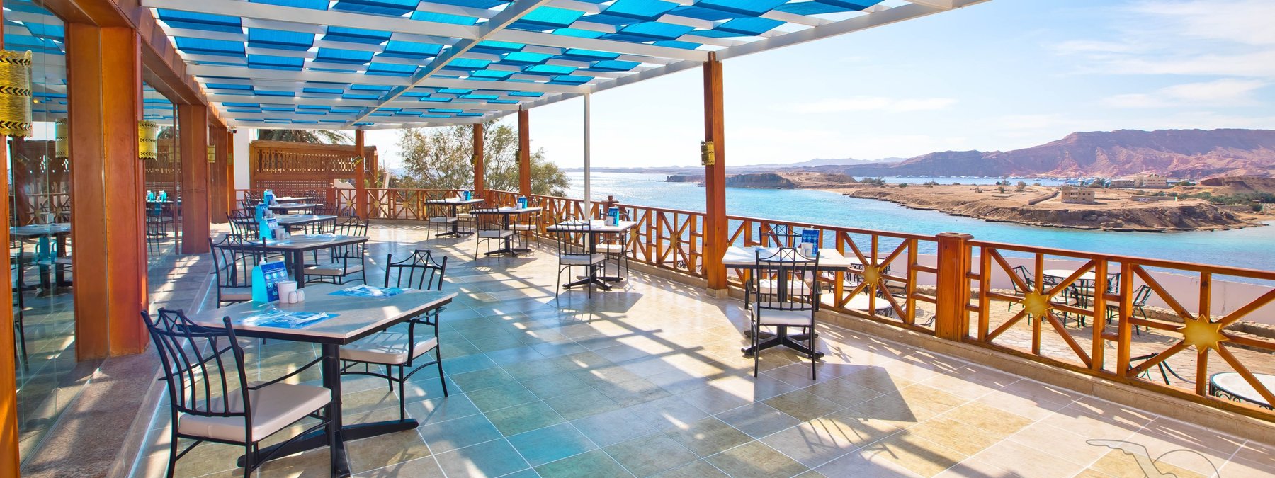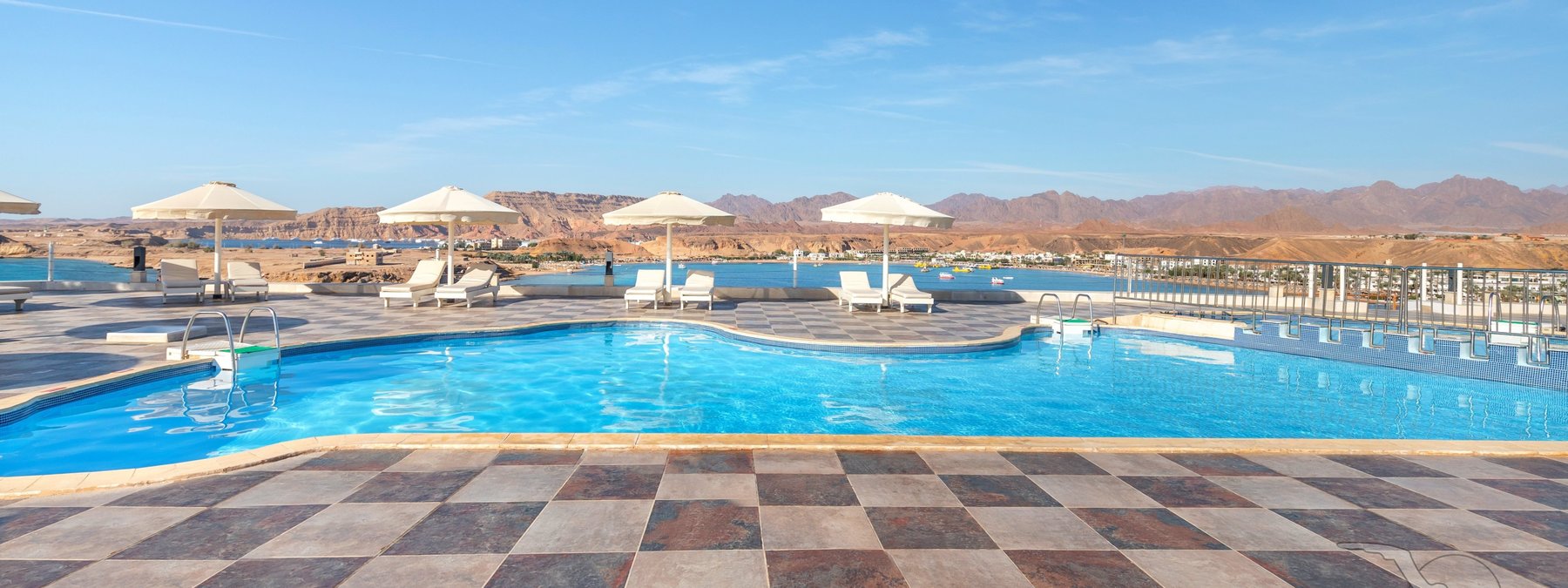 Auf dem Plateau Ras Um el Sid, oberhalb der Maya-Bucht gelegen, mit schöner Aussicht auf das Sinaigebirge. Der private Strand ist über einen Panoramaaufzug bequem erreichbar. Stellenweise wachsen Korallen bis in Ufernähe (Badeschuhe empfohlen). Die Naama Bucht liegt in ca. 8 km Entfernung.