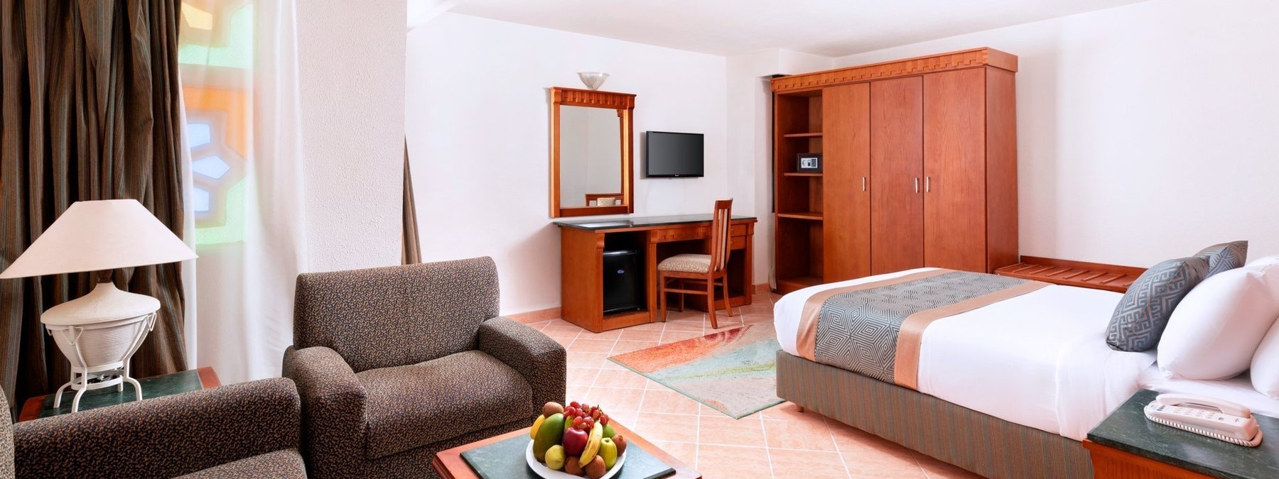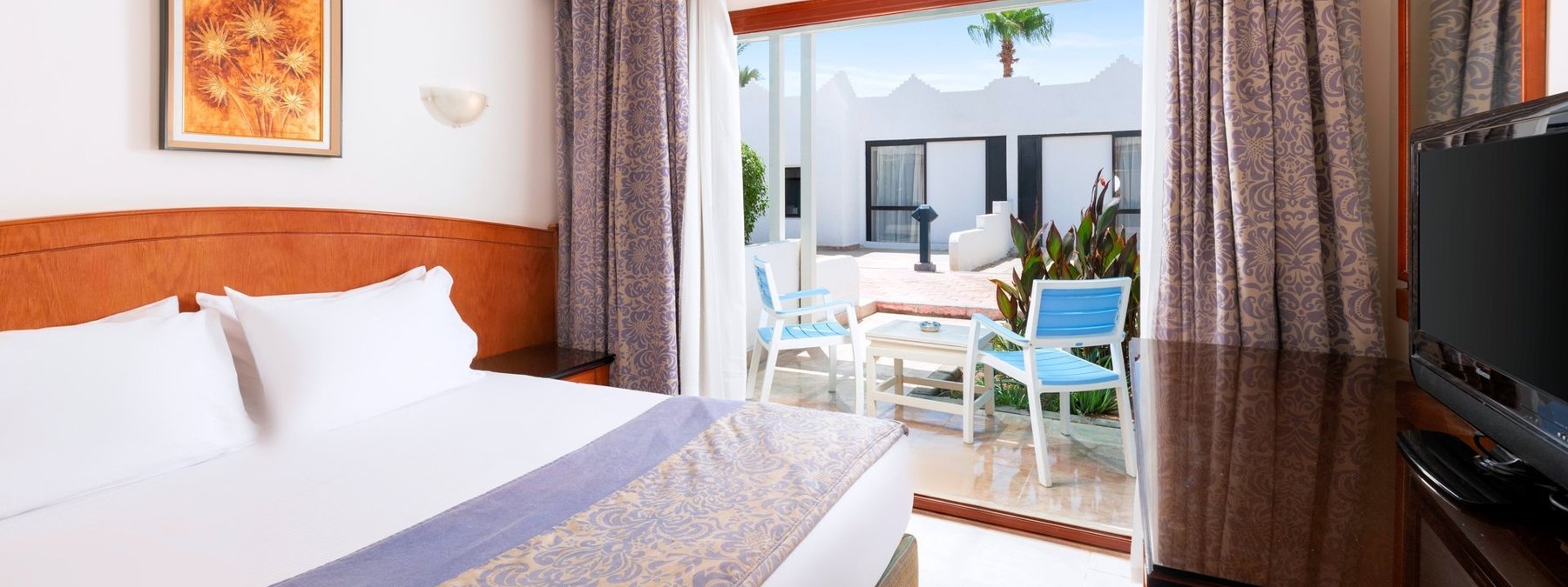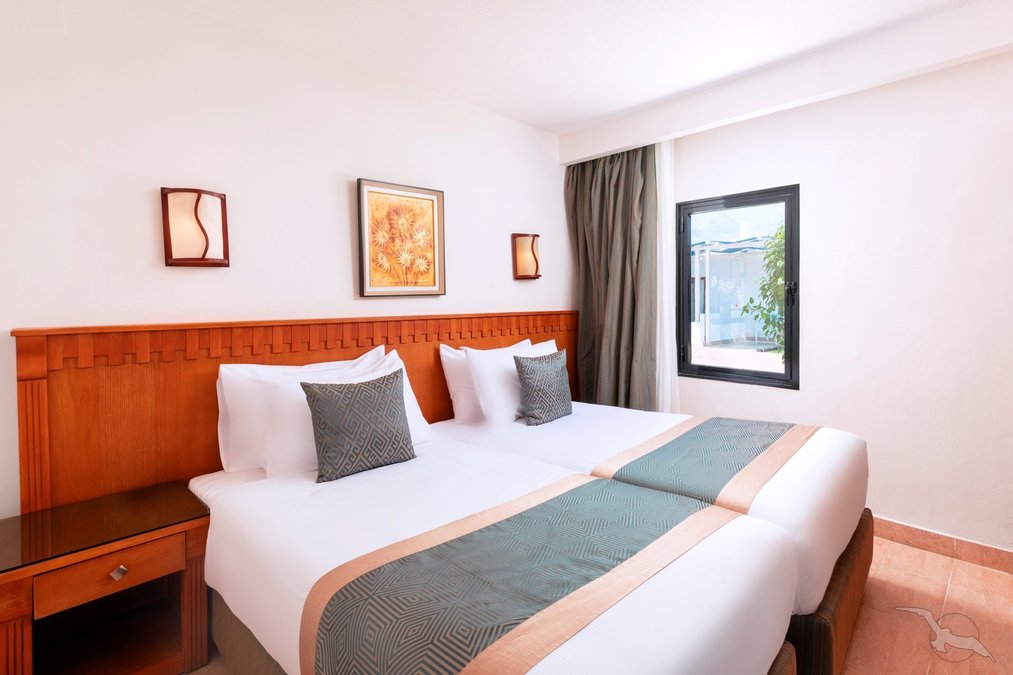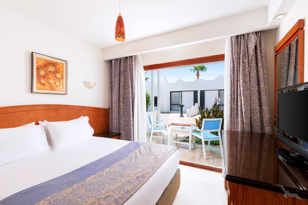 Doppelzimmer (DZ) Komfortabel eingerichtete Zimmer, mit Klimaanlage, Dusche/WC, Föhn, Telefon, Safe, SAT-TV, Minibar und Balkon oder Terrasse. Unterbringung in den Bungalows oder im Haupthaus zum Garten gelegen. Wahlweise Doppelzimmer mit Poolblick (DZP) oder mit Meerblick (DZM) buchbar.