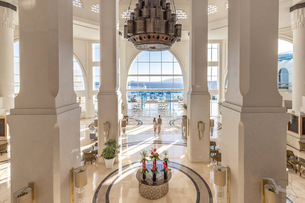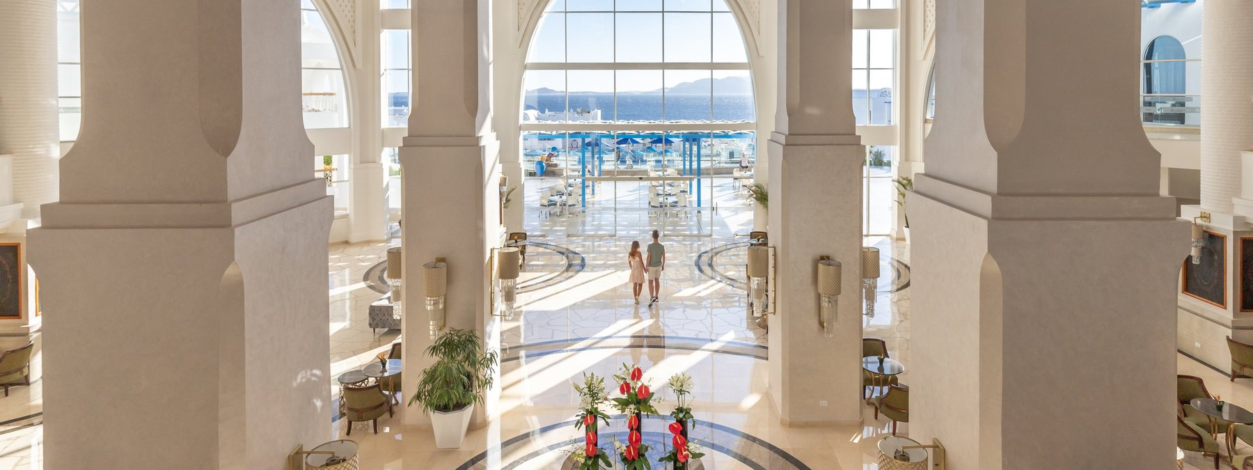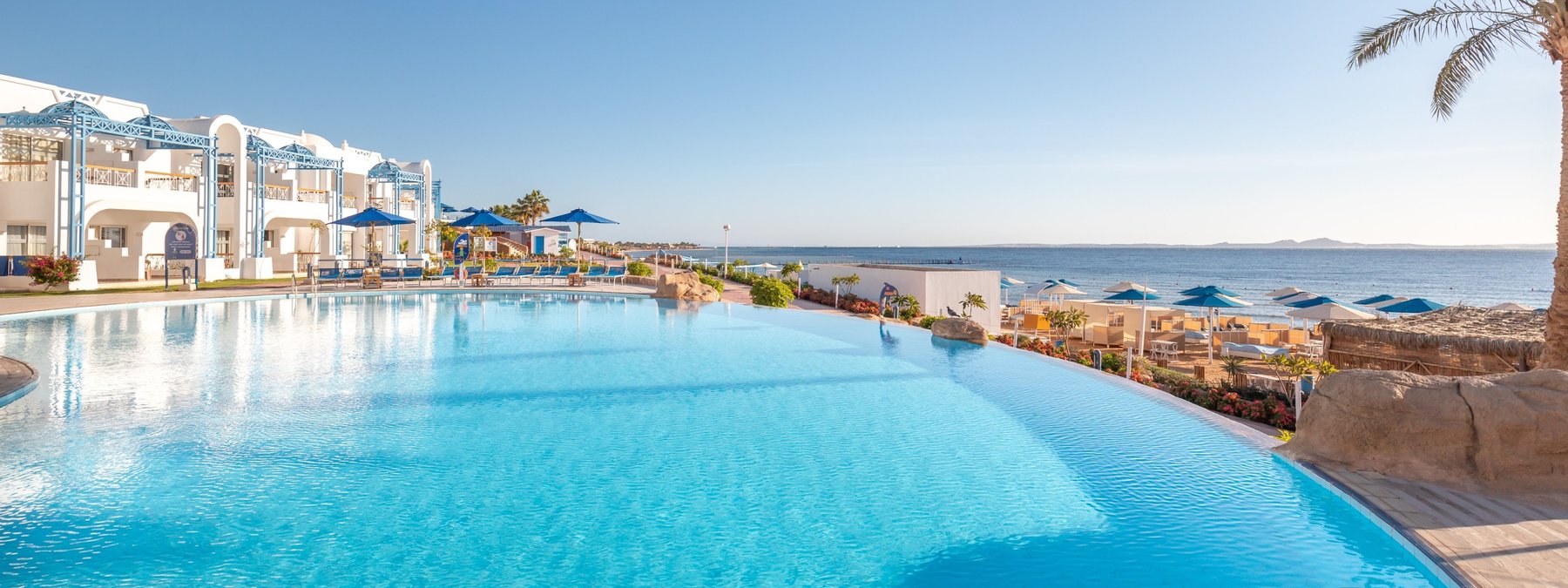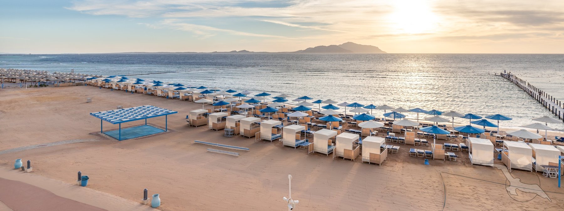 Direkt am hoteleigenen, feinsandigen Strand mit schönem Hausriff an der Montazah Ras Nusrani Bay gelegen. Korallen wachsen stellenweise bis in Ufernähe (Badeschuhe empfohlen). Ein Badesteg ist vorhanden. Das Zentrum der Naama Bay ist ca. 20 Fahrminuten entfernt.