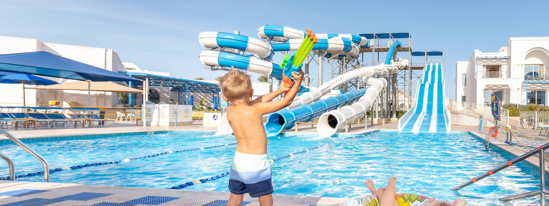 Miniclub (4-12 Jahre), Kinderpool, Aquapark mit 7 Kinderrutschen, Spielplatz.