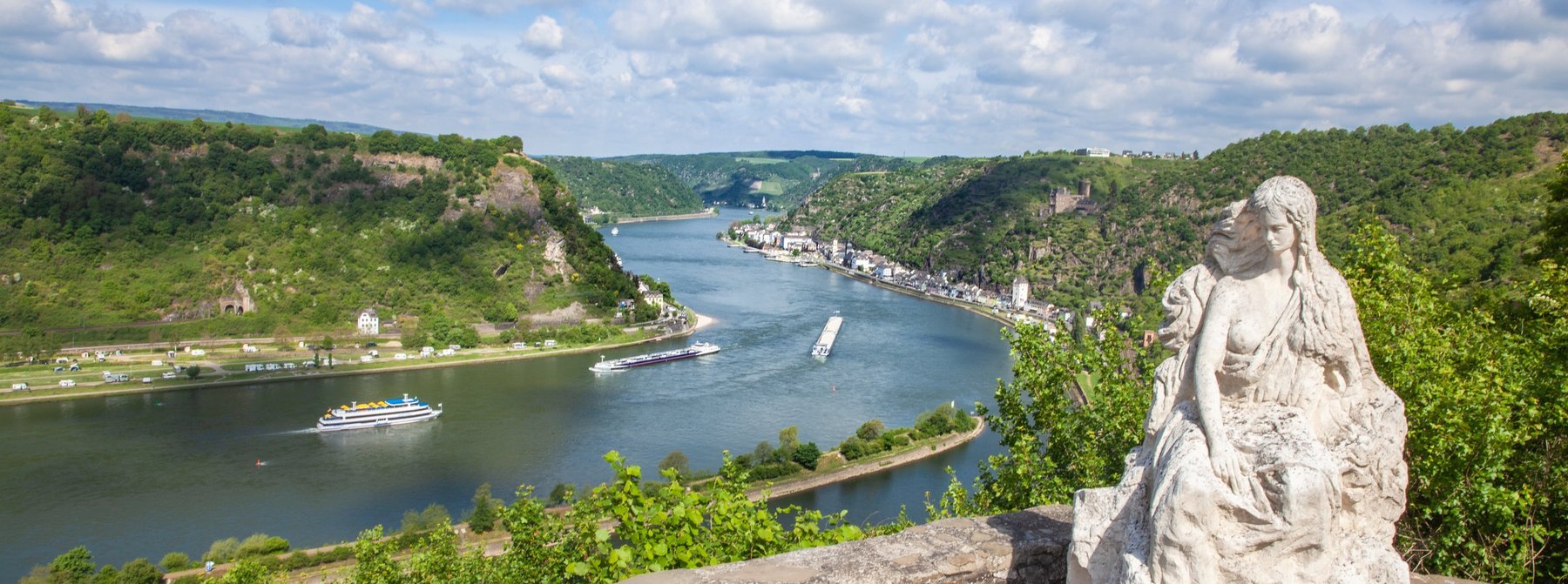 Bei St. Goarshausen im Herzen des Rheinschiefergebirges befindet sich der wohl berühmteste Felsen Deutschlands. 130 Meter oberhalb des Flusses betörte die liebreizende Loreley die Schiffer mit ihrem schönen Gesang und stürzte sie ins Unglück – so erzählt es die Legende. Nach einem kurzen Fußweg zur Haltestelle fahren Sie per Bus auf den Loreleyfelsen. Während des geführten Rundgangs über das neugestaltete Loreley-Plateau wird der uralte Mythos um den sagenumwobenen Felsen lebendig. Genießen Sie den herrlichen Blick auf die engste Stelle des Rheintals. Rückfahrt zum Schiff.