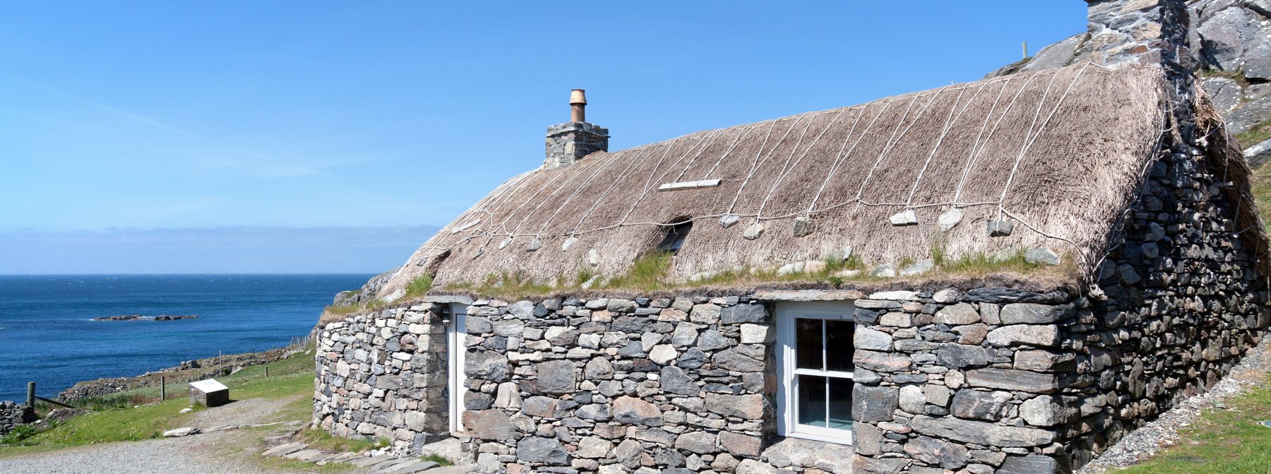 Sie fahren etwa 1 Std. über die Isle of Lewis, den nördlichen Teil der Insel "Lewis and Harris", zum kleinen Freilichtmuseum "The Gearranan Blackhouses", malerisch in einer Bucht gelegen. Das Black House ist ein traditioneller Haustyp in den Highlands, der in der Tradition früherer Langhäuser erbaut ist und Kuhstall, Scheune und Wohnung mit zentraler Torf-Feuerstelle kombiniert. Es gab keinen offenen Rauchabzug, so dass der Rauch in den Giebel aufstieg und die hier gelagerten Nahrungsmittel auf diese Weise geräuchert bzw. konserviert wurden. Noch bis in die 1970er Jahre waren die Häuser bewohnt, ab 1989 erfolgten Restaurierungen und heute ist hier ein kleines Museum für Besucher eingerichtet. Während des einstündigen individuellen Aufenthaltes gewinnen Sie einen Einblick in das Handwerk der Weberei und haben Gelegenheit zu einem Spaziergang durch die reizvolle Umgebung. Danach erfolgt dann wieder die Rückfahrt zum Schiff.