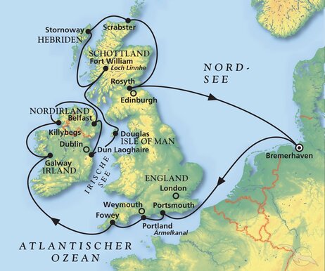 Mit Ihrer MS Amadea lässt sich das Reisen ganz besonders gut genießen, denn an Bord Ihres persönlichen Traumschiffes bleiben keine Wünsche offen. Auch die Route dieser Amadea Kreuzfahrt begeistert jeden See(h)fahrer – der palmengesäumte Süden Englands, die grüne Insel Irland und der herzlich raue schottische Norden bieten unvergesslich schöne Reiseimpressionen.