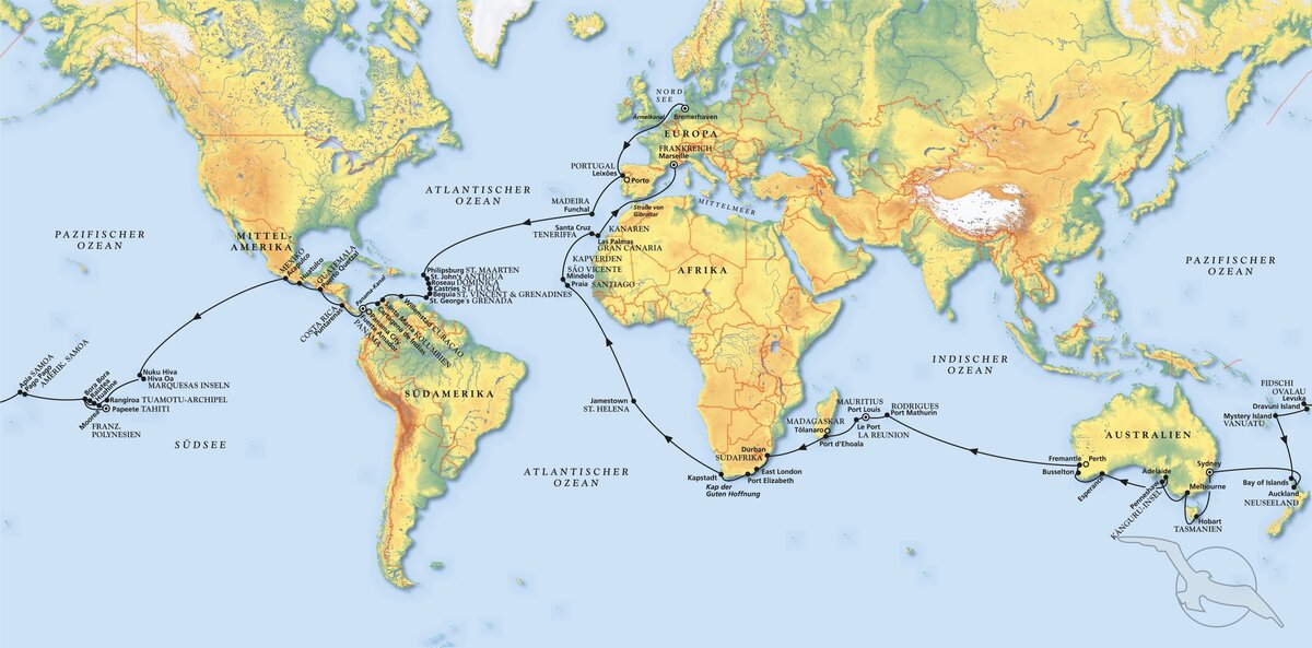 Bremerhaven - Portsmouth - Cádiz - Santa Cruz de la Palma - Roseau - St. John's - Santo Domingo - San Blas Inseln - Panama-Kanal - Fuerte Amador (Panama)