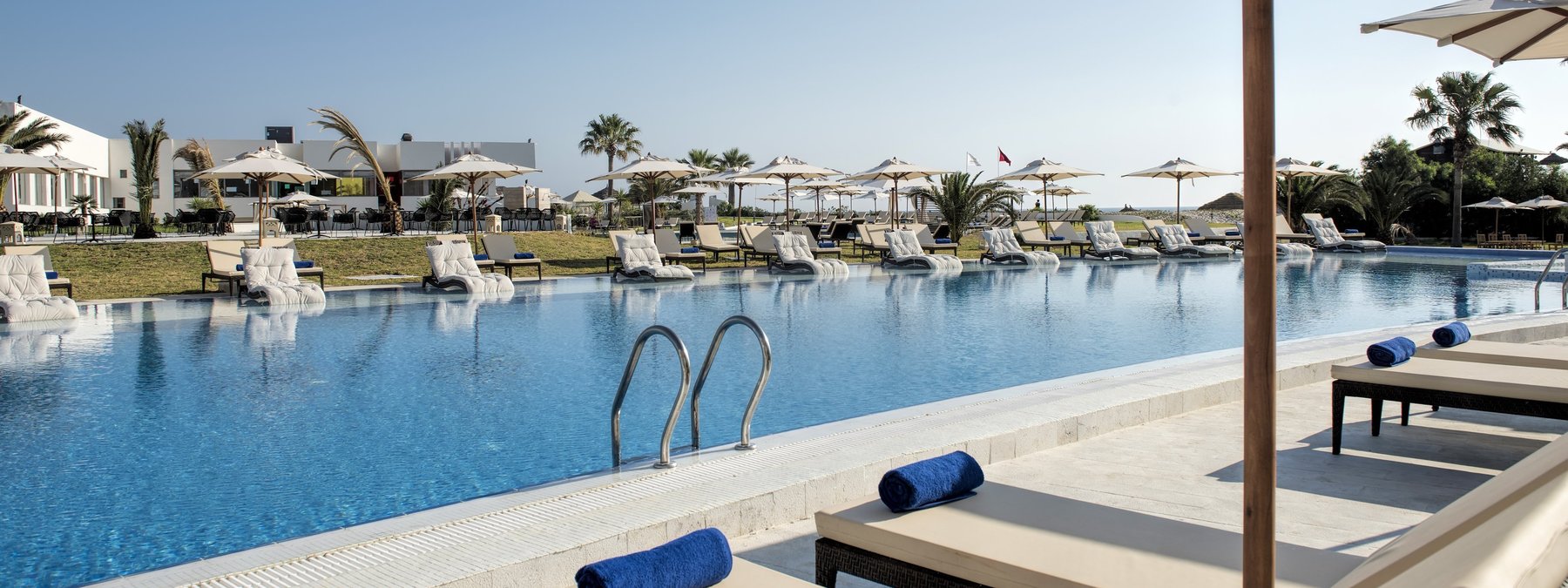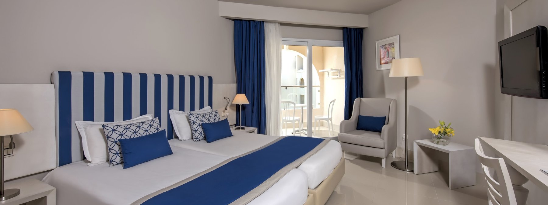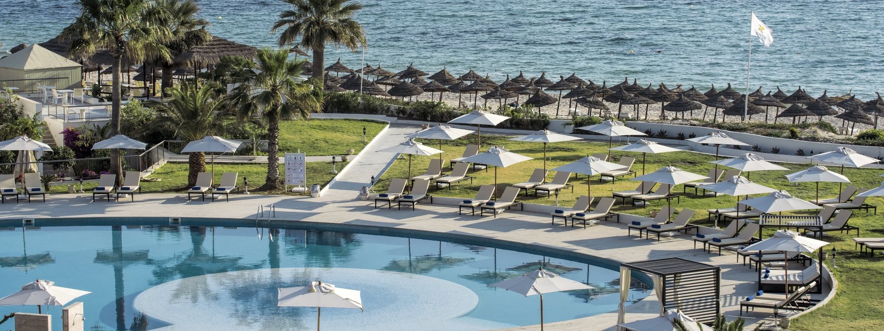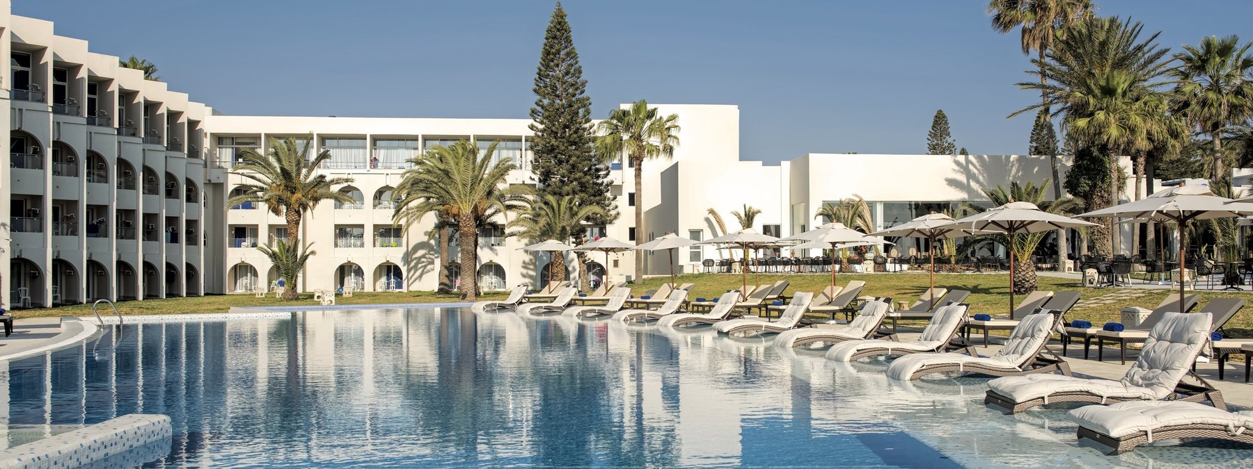 Elegantes Komforthotel auf 3 Etagen, verfügt über eine stilvolle Empfangshalle mit Rezeption, Sitzgruppen, Lift, Lobbybar, WLAN (in der gesamten Anlage inkl.), Hauptrestaurant, 2 Themenrestaurants (italienisch und tunesisch), maurisches Café, Sportsbar, Boutique, Friseur und Hallenbad (Beheizt 01.11.-31.03.). In der großzügig angelegten Gartenanlage Swimmingpool mit separatem Kinderbecken, Relaxpool, Amphitheater (15.6.-15.9.), Pool/Snackbar. Sonnenterrasse, Liegewiesen und Strandbar (saisonal). Liegen, Auflagen und Schirme am Pool und Strand inklusive, Badetücher gegen Kaution.