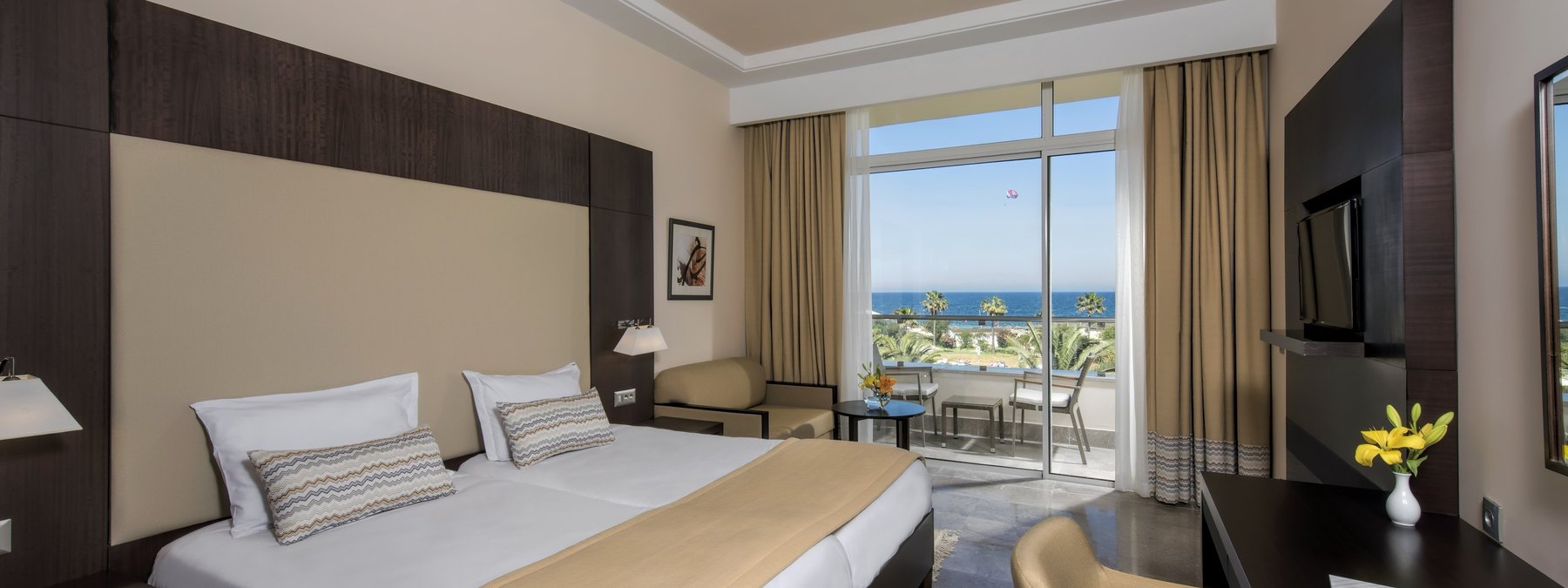 Doppelzimmer Gartenblick (DG) Geschmackvoll eingerichtet, mit Klimaanlage (15.06.-15.09.)/Heizung (15.11.-15.03.), Bad/WC, Föhn, Telefon, SAT-TV, Minikühlschrank (1 Fl. Wasser pro Tag), Safe und Balkon oder Terrasse, mit Gartenblick. Wahlweise mit seitlichem (DKM) oder direktem Meerblick (DZM) buchbar.