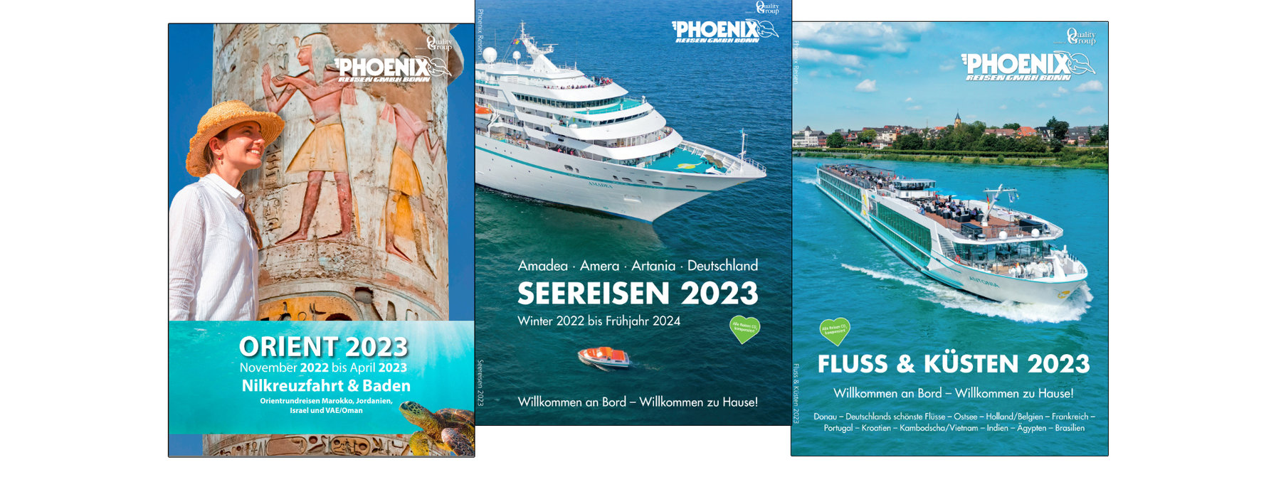 Was mit TS Maxim Gorki begann, entwickelte sich zur Erfolgsgeschichte, die bis heute andauert. Heute fahren MS Amadea, MS Amera, MS Artania und MS Deutschland unter Phoenix-Flagge zu den schönsten Häfen dieser Welt. Im Sommer sind beliebte Ziele wie Ostsee und Nordmeer Fahrgebiete. Im Winter begeben sich die Kreuzfahrtschiffe auf exotische Touren Richtung Süden oder auf Weltreise. Hier findet sich für jeden Gast das richtige Angebot.
