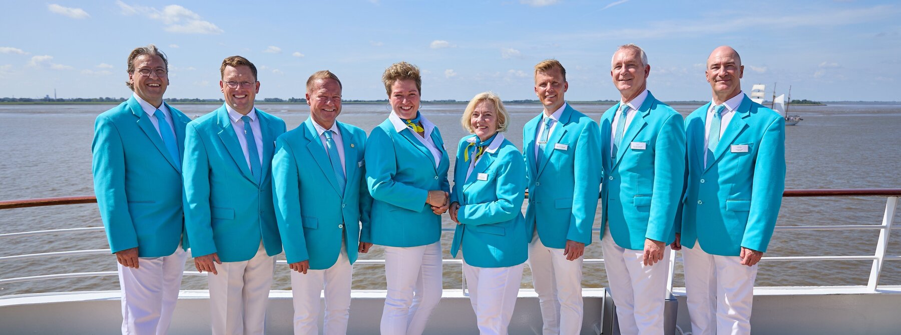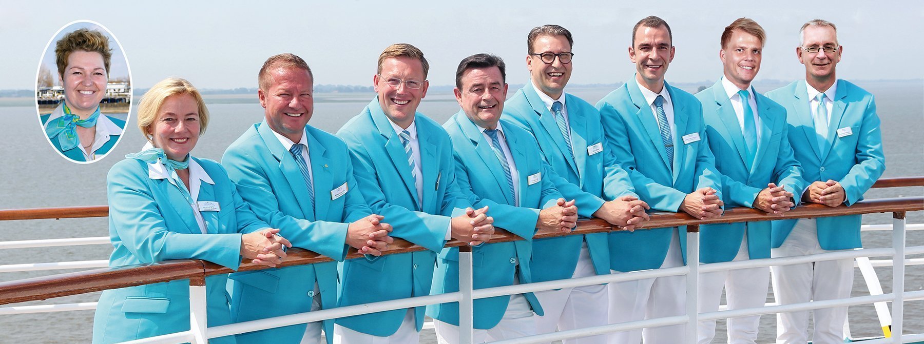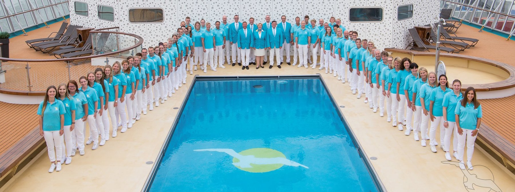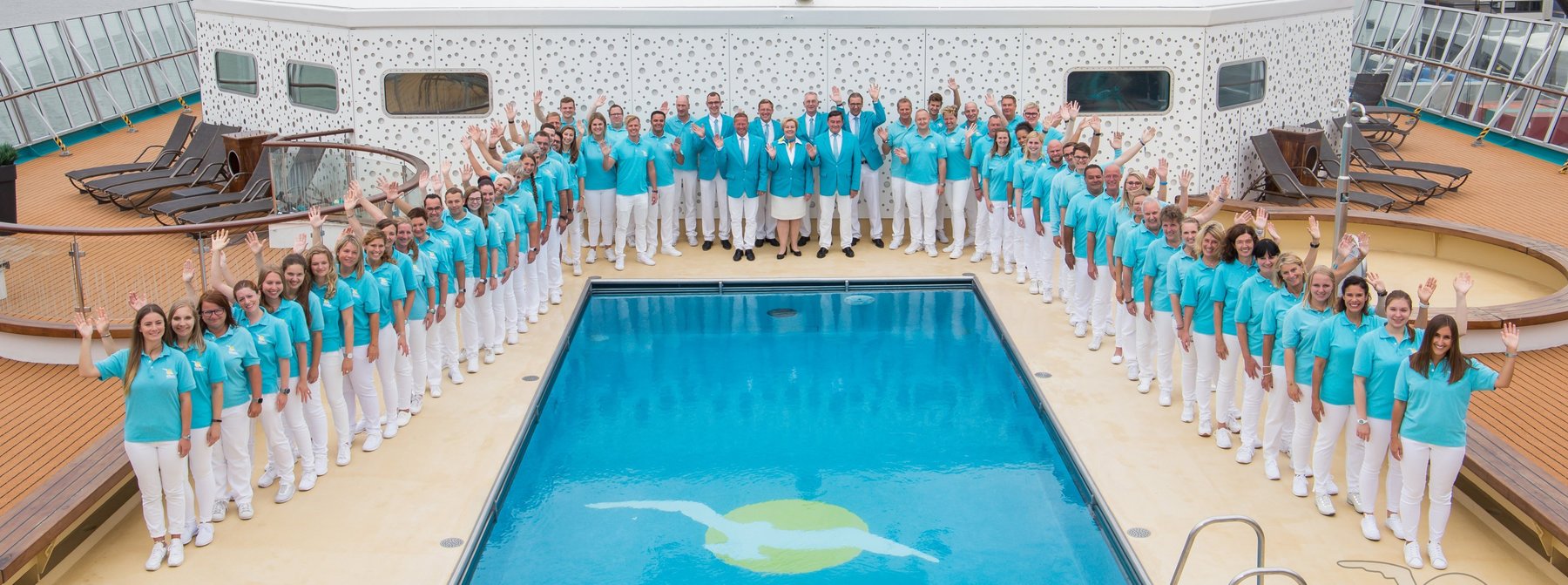 Sie sind Ihre Gastgeber auf hoher See und immer zur Stelle, wenn es darum geht, Ihre Urlaubswünsche zu erfüllen: Kapitän, Kreuzfahrtdirektor und Hotelmanager sorgen gemeinsam mit ihren Crewmitgliedern und Abteilungen für einen reibungslosen Ablauf Ihrer unvergesslichen Kreuzfahrt an Bord unserer Hochseeflotte. Kennzeichnend für unsere gesamte Schiffsleitung ist eine langjährige, sehr enge und vertrauensvolle Zusammenarbeit. Ein aufrichtiger Teamgeist und eine herzliche Gastfreundschaft werden von der Brücke über alle Decks bis hinunter in den Maschinenraum mit Herz und Seele gelebt. Verlassen Sie sich darauf: Die Herzen aller Mitarbeiter schlagen türkis-weiß – vom Offizier bis zur Stewardess, vom Reiseleiter bis zum Barkeeper und vom Koch bis zur Hausdame.
