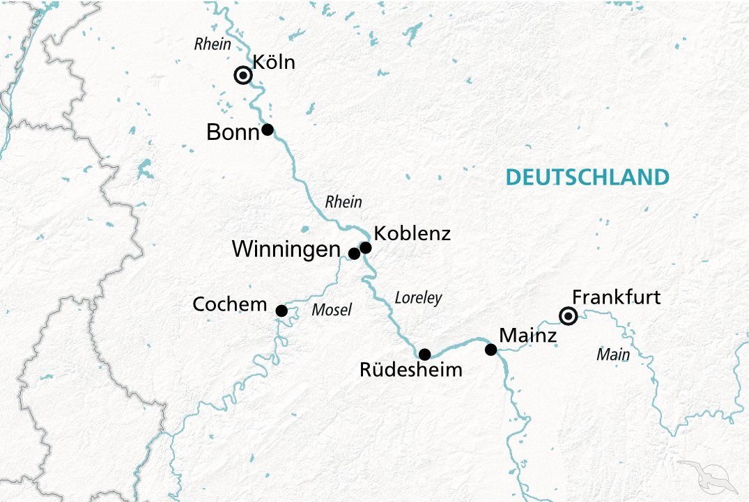 Frankfurt - Mainz - Rüdesheim - Loreley - Cochem - Koblenz - Bonn - Köln