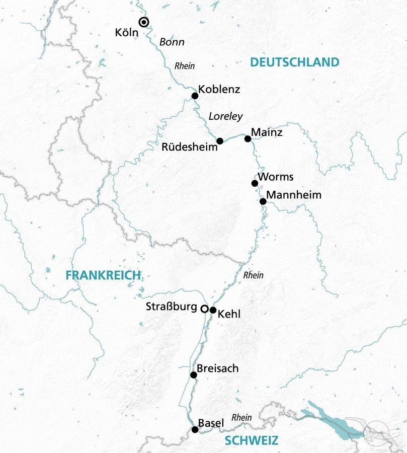 - Inklusive Transfer vom Bahnhof zum Schiff bzw. umgekehrt bei den Häfen Passau und Köln.