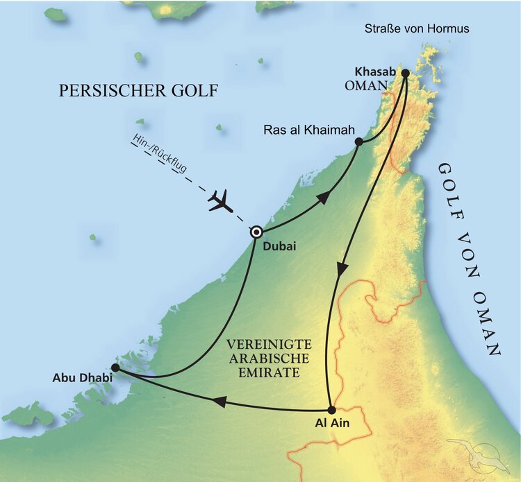 Die Emirate am Arabischen Golf blicken dank der Perlenfischerei auf eine beschauliche Geschichte zurück. Erst der Reichtum und Aufstieg durch das schwarze Gold katapultierte das Land in der zweiten Hälfte des letzten Jahrhunderts in Windeseile in die Moderne. Die beiden Mega-Cities Dubai und Abu Dhabi sind mit ihren Bauten der Superlative das gläserne Zeugnis dafür. Aber auch die Nachbarschaft zur naturbelassenen, spektakulär anmutenden Küstenlandschaft des Sultanats Oman, welche Sie auf einer Bootsfahrt erleben, sowie ein Besuch der Ruheoase der Scheichs von Al Ain im Landesinneren sind sehenswerte Höhepunkte auf unserer einwöchigen Kombination aus Rund- und Städtereise. In Dubai stehen Ihnen zwei zusätzliche Tage zur Verfügung, um den mondänen Urlaubsmagneten am Golf auf eigene Faust an den Stränden genießen und in den extravaganten Freizeit- und Shoppingmalls erleben zu können.